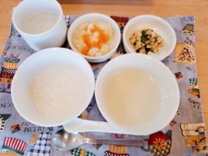 ☆7倍粥☆出し汁☆豆腐のほうれん草添え☆じゃが芋と人参添え
