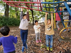 久しぶりのかばさん公園だったので初めに逆立ちかばさんにご挨拶。年長さんの男の子が代表して「これからも宜しくお願いします」と切り出すとみんなも「お願いします!」と挨拶をしていました。