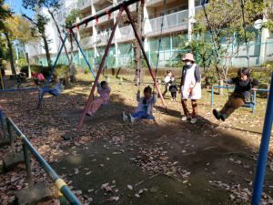 今日は澄み切った冬晴れが広がる中、かばさん公園に行って来ました。道中は真っ白な帽子を被った富士山を眺めながらウキウキした表情で歩く子ども達でした。