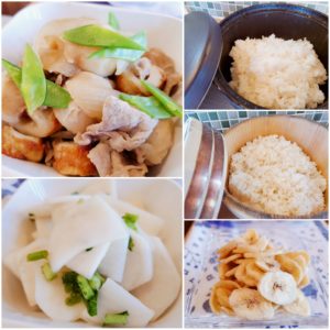 ☆玄米入りご飯/白米☆里芋の肉じゃが☆カブの浅漬け☆バナナチップ
