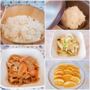☆玄米入りご飯/白米☆根菜のきんぴら☆白菜の浅漬け☆オレンジ