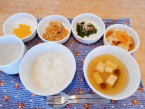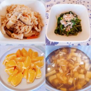 ☆切干大根の煮物☆ほうれん草のお浸し☆きのこの澄まし汁☆オレンジ