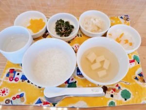 【中期】☆5倍粥☆豆腐の和風スープ☆鱈のあんかけ☆大根と人参の煮物☆ほうれん草おかか和え☆オレンジ
