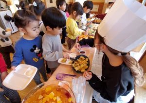 今日は12月のお誕生日会を行いました。3人のお友達にちなんだクイズを楽しんだりバースデーランチをみんなで食べて楽しく過ごしました。