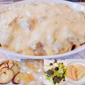 ☆クリームチキンドリア風☆コンソメスープ☆さつま芋のオーブン焼き☆レタスのりサラダ☆りんご