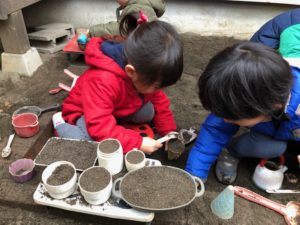寒い中、虫探しや砂場に深い穴を掘ったり、お店屋さんをしていました✨