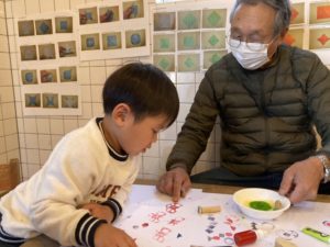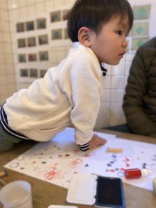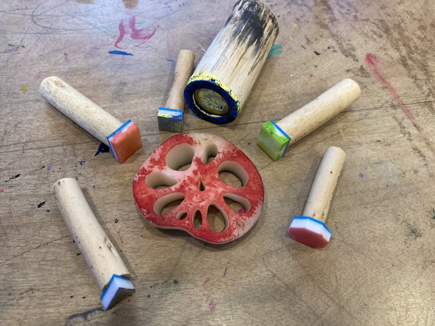 今日のアトリエの日は、『スタンプで新しい形を見つけよう!!』と色々な形のスタンプを楽しみました♪