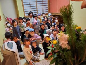 一年間使わせてもらったどんぐりの家をみんなで綺麗にして全部の部屋を掃除し終わり、夕方【鏡餅】【お正月飾り】を飾って