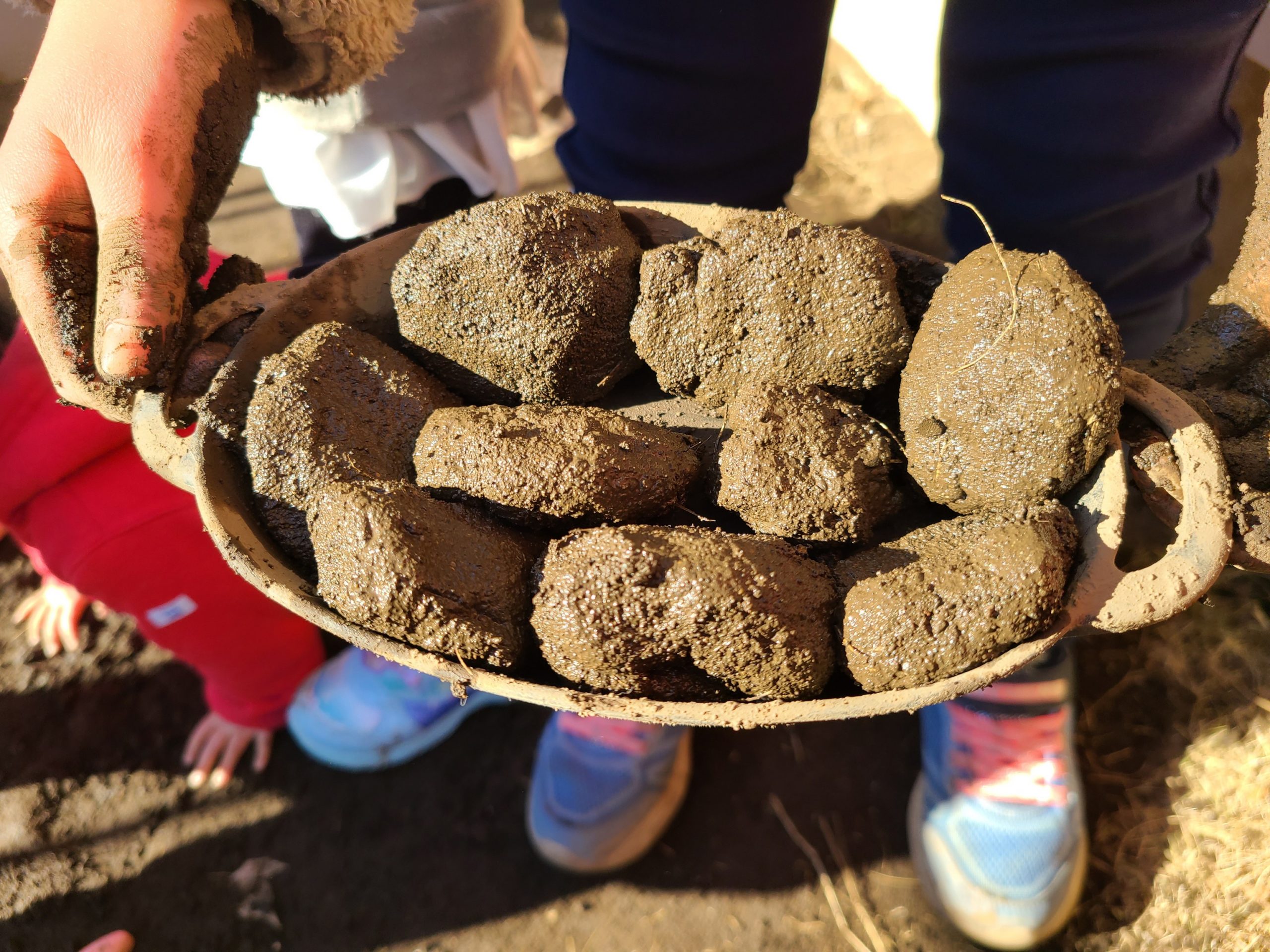お庭で過ごした子ども達はみんなでせっせとハンバーグ屋さんの開店の準備をしていました。