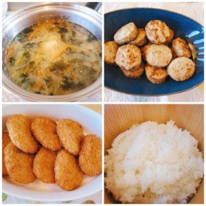 ☆コロッケ&ハンバーグ☆ご飯☆ほうれん草と玉葱の具沢山味噌(大人気で完売で~す♪)