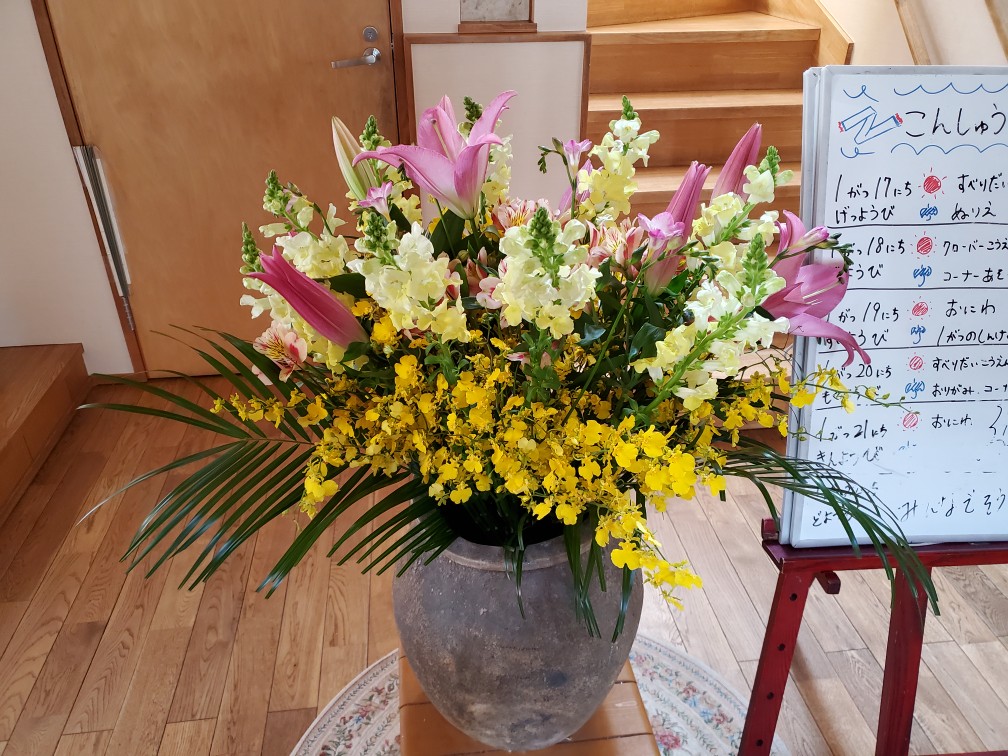 毎週火曜日お花屋さんからどんぐりの玄関にお花が届きます。