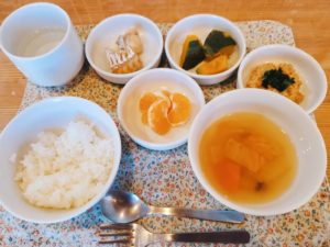 【後期/完了期】☆軟飯☆冬のなめこ汁☆煮魚(タラ)☆蒸かし南瓜☆ひきわり納豆☆みかん