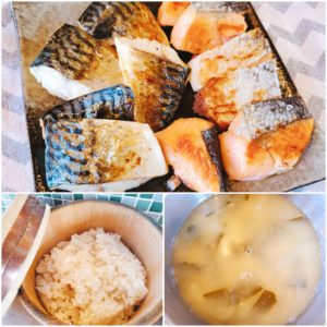 ☆焼き魚(鮭・鯖)☆玄米入りご飯☆わかめとえのきと豆腐の味噌汁