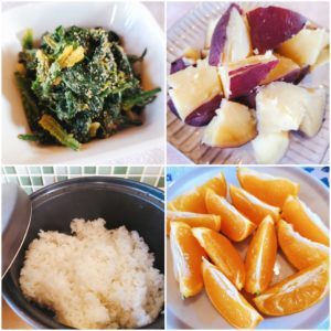 ☆ほうれん草の胡麻和え☆蒸かしさつま芋☆たんかん☆白米(アレルギー食)