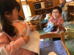自分達で”おうちごっこ”と設定して役になりきって遊んでいたり…