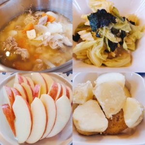 ☆豚汁☆粉ふき芋☆キャベツの海苔和え☆りんご