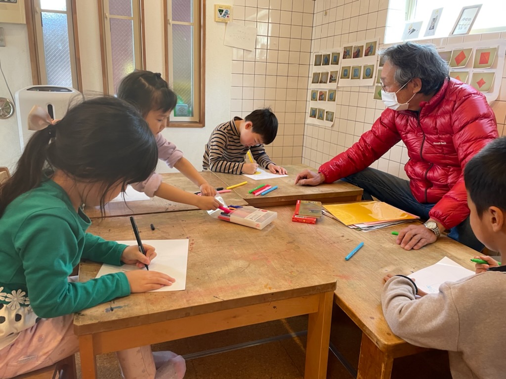 今日は年中さんのアトリエの日。先生がみえると「今日は宜しくお願いします!」と元気よく挨拶をしていた子ども達です😊