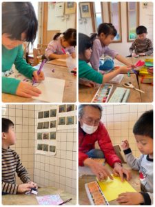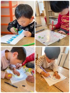 その中で丁寧に色を塗ることや絵の切り取り方を学びました🖍