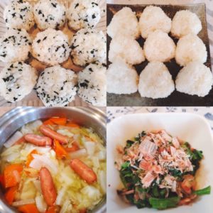 ☆わかめご飯☆ころころおにぎり☆小松菜のおかか和え☆ポトフ