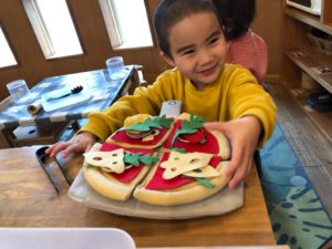 お部屋ではアトリエコーナーでお寿司を作ったり、おままごとコーナーでピザを作ってくれたりして過ごしました♪