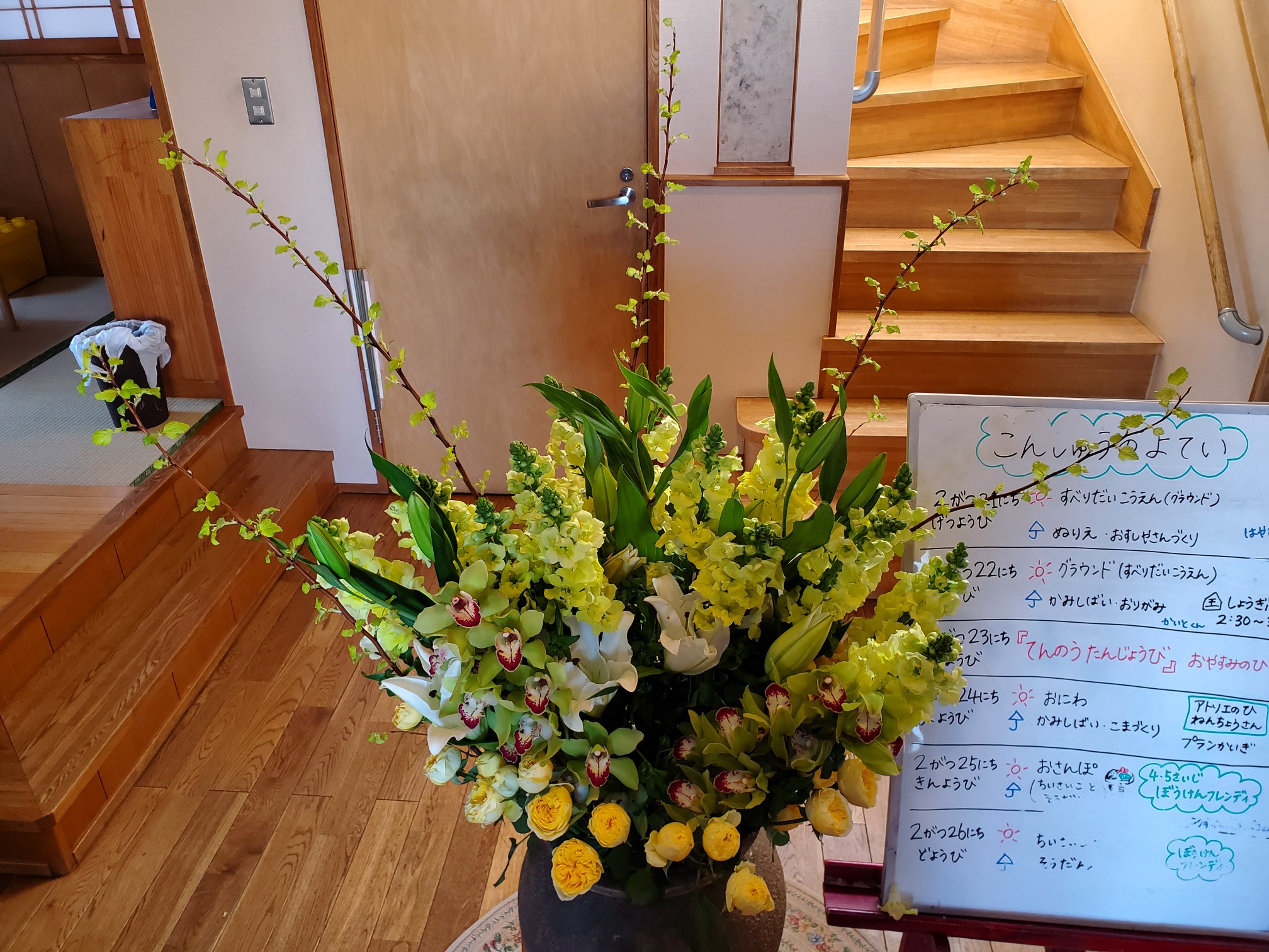 毎週火曜日お花屋さんからどんぐりの玄関にお花が届きます。