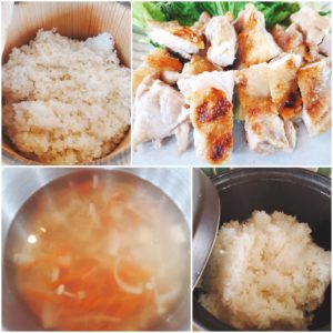 ☆チキンステーキ☆玄米入りご飯/白米☆新玉葱と人参のスープ