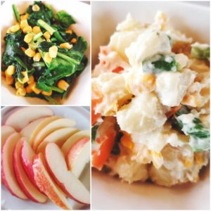 ☆春のポテトサラダ☆ほうれん草とコーンのソテー☆りんご