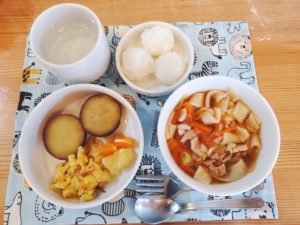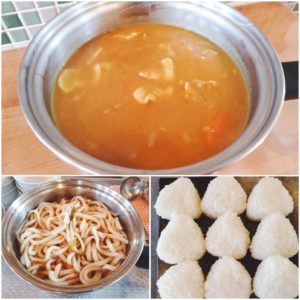 ☆煮込みうどん☆おにぎり☆さつま芋の甘煮☆白菜のおかか和え☆果物