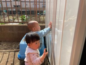 2人して色んな壁をパンパンたたきお互い真似っこしながら同じ遊びを楽しんでいました☆