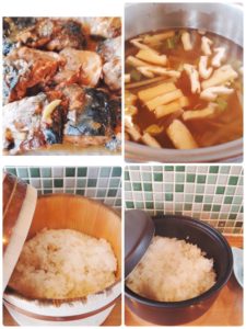 ☆サバの味噌煮☆野菜のお吸い物☆玄米入りご飯☆白米