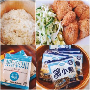 ☆コロッケ&ハムカツ☆玄米入りご飯☆ふりかけ☆ポリポリ小魚