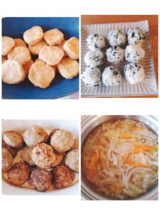 ☆わかめおにぎり☆野菜スープ☆チキンナゲット☆ハンバーグ