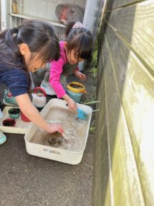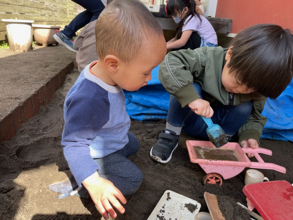 日中は天気も回復しみんなでお庭に出ることが出来ました😊水たまりを見つけると「泥遊びが出来るよ!やったー!」と心を弾ませる子ども達でした☆彡