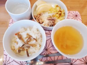 ☆牛蒡ときのこの炊き込みご飯☆大根の味噌汁☆肉豆腐☆白菜のおかか和え☆りんご