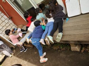 お庭で遊んでいると、なにやら室内から音が聞こえてくるぞ…?