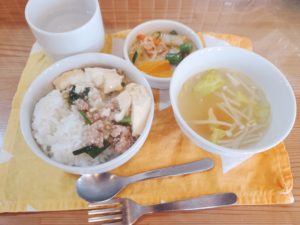 ☆麻婆豆腐☆玄米入りご飯☆大根とコーンのスープ
