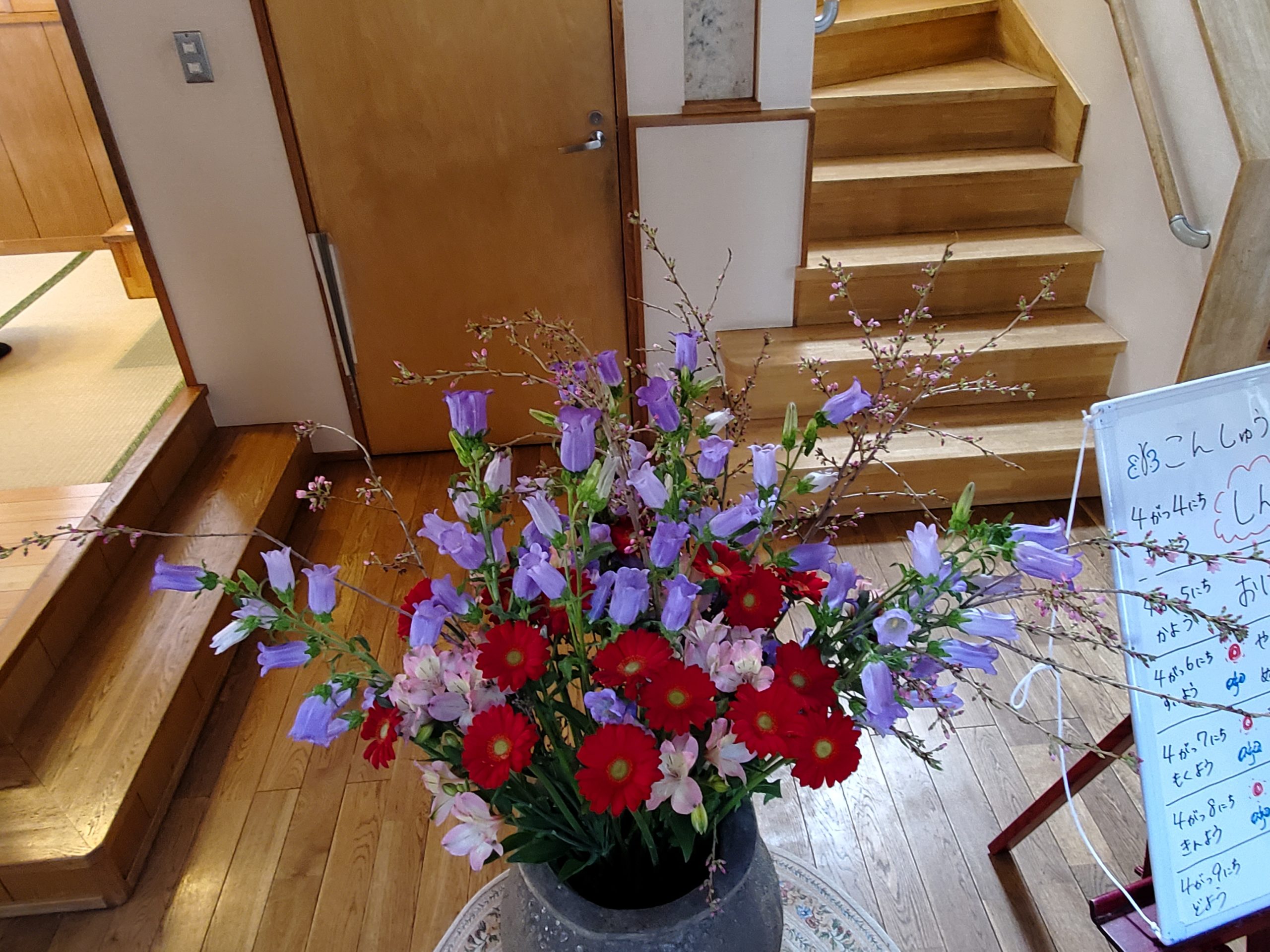 毎週火曜日お花屋さんからどんぐりの玄関にお花が届きます。