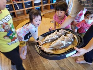 今日は子ども達の楽しみにしているお魚の日でした😊みんなが一つ大きくなって〝めでたい〟という事で鯛を仕入れてきてくれましたよ~♪塩焼きで美味しく頂きました!!