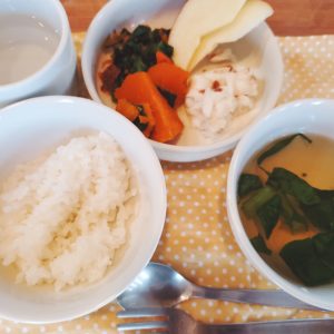 ☆鯛の塩焼き☆蛤のお吸い物☆白米☆南瓜の煮物☆小松菜と人参のおかか和え☆りんご