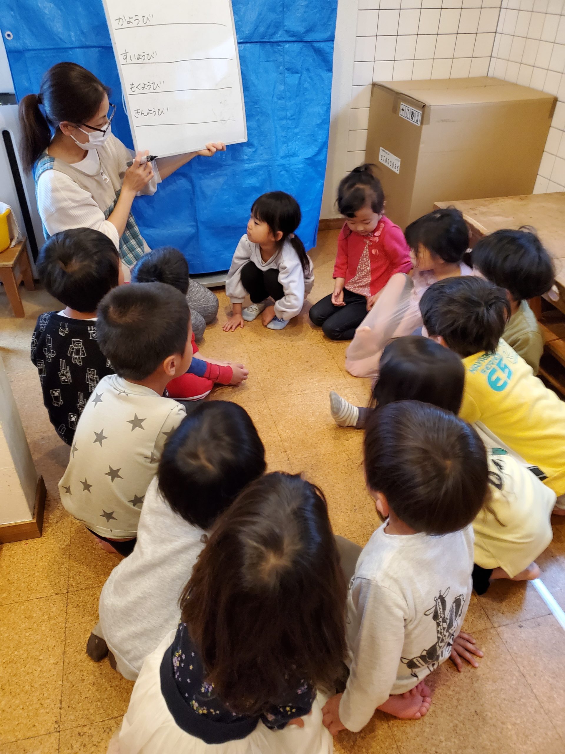 今日も外はあいにくの雨…☔ 週初めの暑さとは打って変わって今日は肌寒い一日でしたね。皆さん体調を崩さないように気を付けて行きましょうね! 今日は新年中さん年長さんになって初めてのプラン会議を行いました。大きい子として初の活動です!