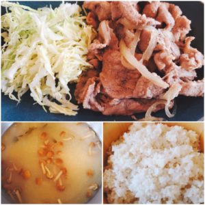 ☆豚肉の生姜焼き☆千切りキャベツ☆なめことわかめの味噌汁☆玄米入りご飯