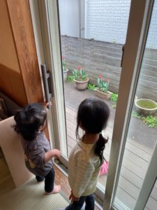 今日は冷たい雨が降り続けましたね。お外にいけないことは分かっていてもやっぱりお外が気になる子ども達です。