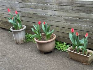 雨の様子を見たり庭のチューリップが咲き始めている様子を眺めていました。