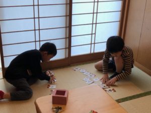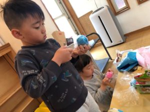 室内で遊ぶと決めた子たちはてるてる坊主を作ったりトランプをしたり…