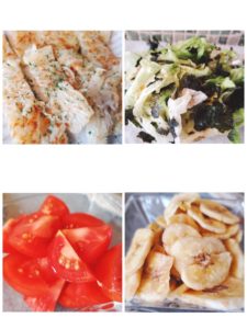 新じゃがのガレット☆レタスのりサラダ☆トマト☆バナナチップス