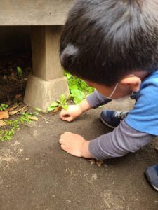 雨が降らないうちはお庭で春探しをしていたり、