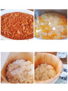☆水なしカレー☆新玉葱のスープ☆玄米入りご飯☆白米