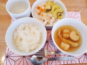 ☆白米☆きのことお麩の澄まし汁☆白身魚のソテー☆春キャベツのおかか和え☆カブと人参の煮物☆キウイフルーツ