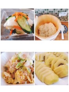 ☆春キャベツのおかか和え☆カブの浅漬け☆白米☆キウイフルーツ