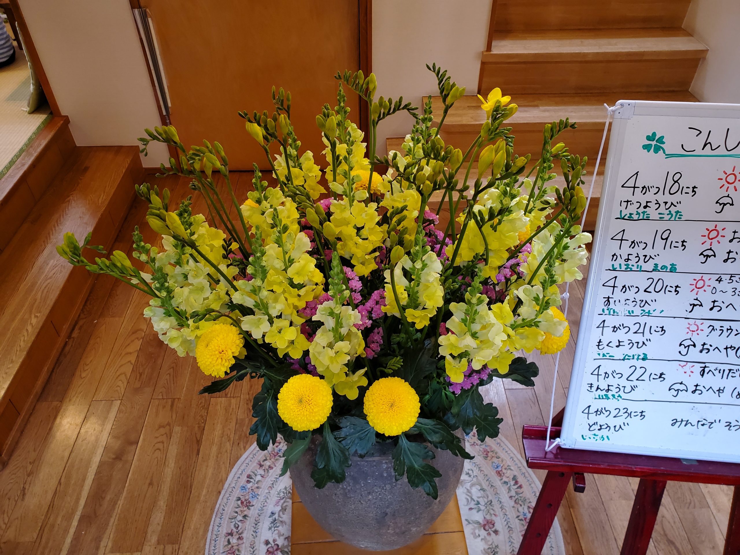 毎週火曜日お花屋さんからどんぐりの玄関にお花が届きます。